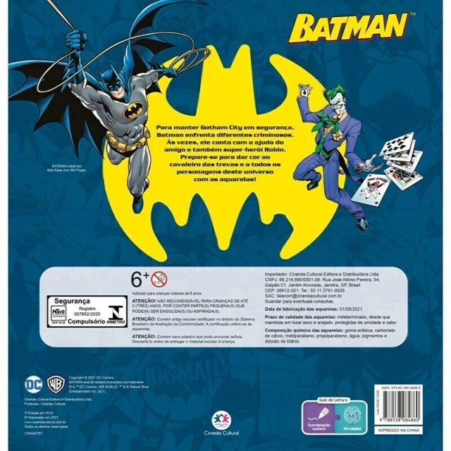 Para manter Gotham City em segurança, Batman enfrenta criminosos. Às vezes, ele conta com a ajuda do amigo e também super-herói Robin. Prepare-se para dar cor ao cavaleiro das trevas e a todos os personagens deste universo com as aquarelas!